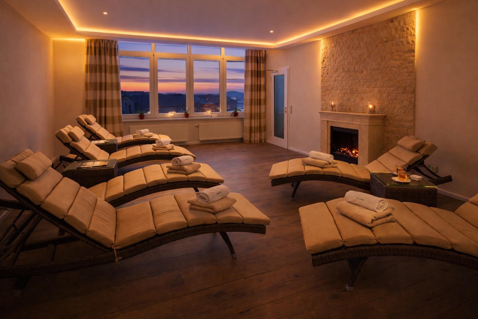 o Ruheräume und Liegen im Innen- und Außenbereich.
